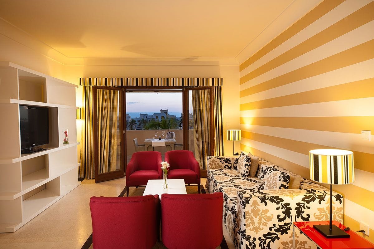 Zasnovane so v modri ali bež barvi in merijo 90m2. Suite imajo dnevno sobo, kopalnico, spalnico in zunanjo teraso. Sprejmejo do 3 osebe. Spalnico je mogoče razdeliti z lesenimi drsnimi vrati na dve ločeni sobi. Vsaka suita ima ima slikovit razgled na Souly zaliv v Salalah Marina mestu ter prostorno teraso z ležalniki. Sobe imajo: