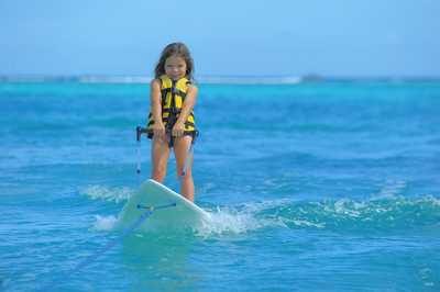 Hiška za vodne športe je locirana ob glavnem bazenu. V ponudbi imajo windsurfing ali water skiing, izlet s čolnom steklenega dna, potapljaški center s celotno opremo za izposojo s tečaji potapljanja za začetnike in izkušene potapljače. Za otroke zelo zanimiva ponudba hranjena ribic pod vodo, morsko življenje pa boste lahko raziskali tudi s podvodnim skuterjem ali pomornico.